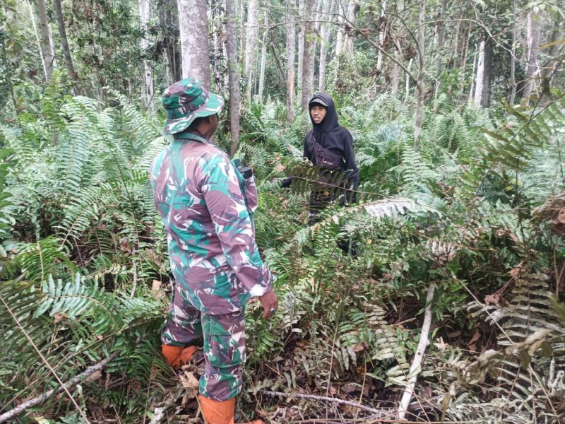BENGKALIS — Babinsa Koramil 04/Rupat Sertu Wahirman bersama masyarakat melaksanakan patroli kebakaran hutan dan lahan (karhutla) di wilayah lahan rawan yang berada di Desa Sukarjo Mesim, Kecamatan Rupat, Kabupaten Bengkalis, Rabu (25/1/2026).