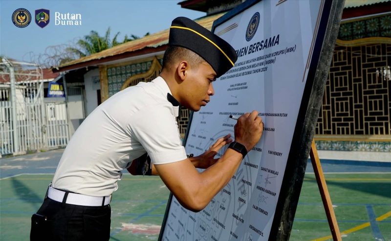 DUMAI – Rumah Tahanan Negara (Rutan) Kelas IIB Dumai melaksanakan kegiatan Penandatanganan Komitmen Bersama Pembangunan Zona Integritas sebagai wujud nyata komitmen dalam mewujudkan tata kelola pemerintahan yang bersih, transparan, dan berintegritas, Kamis (5/2).