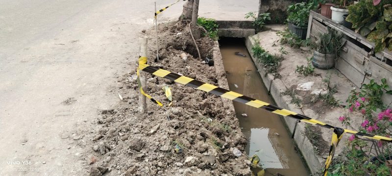 Yang lebih parahnya lagi, di waktu hujan, genangan air menutupi bekas bekas galian pipa gas ini tidak kelihatan dan itu bisa membahayakan,” Sebutnya.