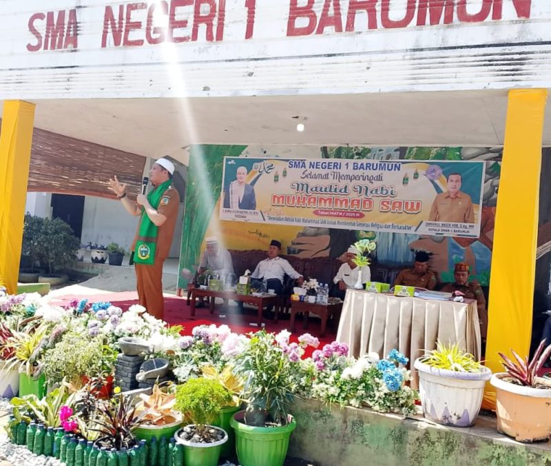 Peringatan Maulid Nabi Muhammad SAW tahun ini adalah Meneladani Akhlak Nabi Muhammad SAW untuk Membangun Karakter Generasi Muda yang Religius. Acara berlangsung khidmat dengan dihadiri oleh Ketua BSPPL H.Pauzan Hamidy Hasibuan SAg, Asisten II Drs.H.Marza Zennova MM, Asisten III Drs.H.Amir Soleh Nasution, Kasatpol PP Damkar Agus Saleh Saputra Daulay SH MM, Kadis DPMPTSP Ir. Sarlen Harahap ST, Sekretaris Inspektorat Tri Hendra A.Dinata, SKM MKes, Kepala Sekolah SMA Negeri 1, Ikhsanul Nasir Hasibuan, SAg, MM bersama jajaran guru.