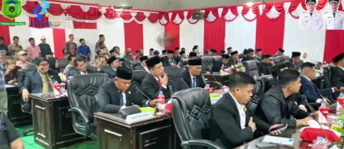 Turut Hadir Forkopimda, Pj. Sekretaris Daerah, Asisten, Staf Ahli, Staf Khusus Bupati Padang Lawas, dan Kepala SKPD. Acara ditandai dengan penyerahan dokumen P-APBD Kabupaten Padang Lawas 2025 dari DPRD kepada Pemerintah Daerah Kabupaten Padang Lawas.