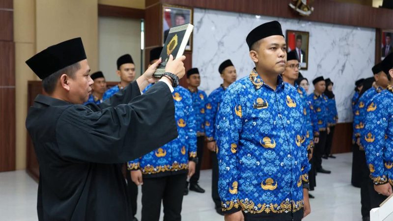 JAKARTA – Sekretaris Utama BNN RI, Tantan Sulistyana, memimpin prosesi pelantikan sekaligus pengambilan sumpah/janji Pegawai Pemerintah dengan Perjanjian Kerja (PPPK) di lingkungan BNN, Rabu (1/10).