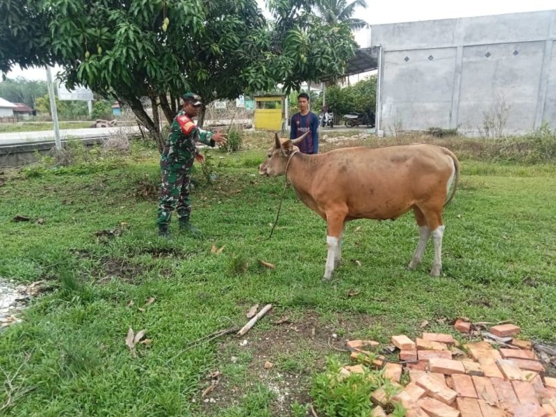 BENGKALIS – Guna mencegah penyebaran penyakit mulut dan kuku (PMK) pada hewan ternak, Babinsa Koramil 04/Rupat, Kopda Fery Ramadhan, bersama Bapak Hari, selaku pemilik ternak, melaksanakan kegiatan pemantauan kesehatan hewan di Desa Hutan Panjang, Kecamatan Rupat, Kabupaten Bengkalis. Kegiatan berlangsung mulai pukul 09.00 WIB hingga selesai.