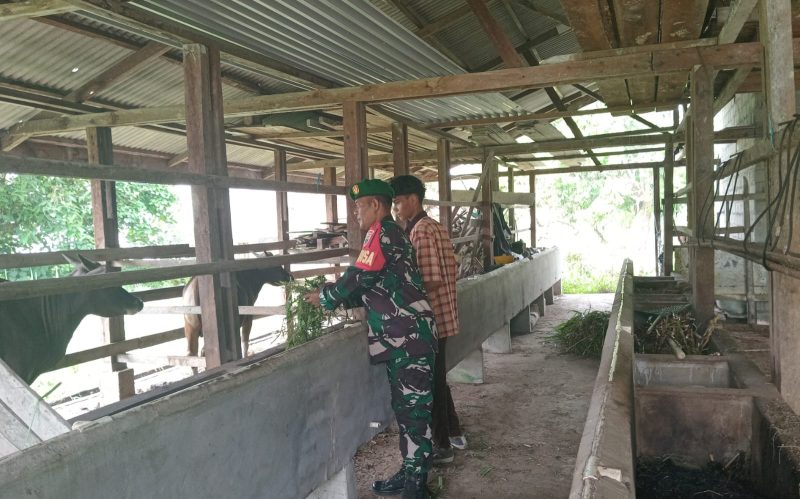 Adapun yang hadir dalam kegiatan pemantauan PMK hewan tersebut, Koptu Jumirin, Bapak Parman (Pemilik ternak),