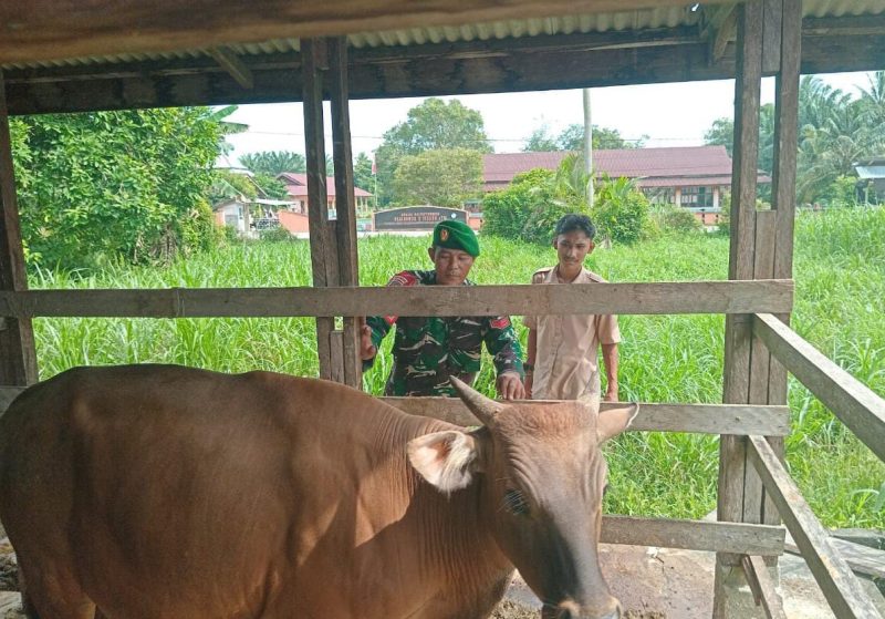 Dalam kegiatan tersebut, Koptu Jumirin didampingi oleh Bapak Wawan, salah satu pemilik ternak di desa setempat. Pemantauan dilakukan secara langsung terhadap kondisi hewan ternak guna memastikan tidak adanya tanda-tanda penyebaran penyakit mulut dan kuku (PMK) yang dapat menyerang sapi, kambing, maupun jenis hewan ternak lainnya.