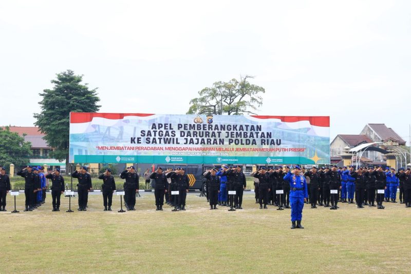 PEKANBARU – – Sebanyak 250 personel gabungan Polda Riau dan polres jajaran diturunkan ke lapangan untuk mengeksekusi pembangunan 26 jembatan di Bumi Lancang Kuning. Personel Satgas Jembatan Merah Putih Presisi ini dilepas langsung oleh Kapolda Riau Irjen Pol Herry Heryawan.