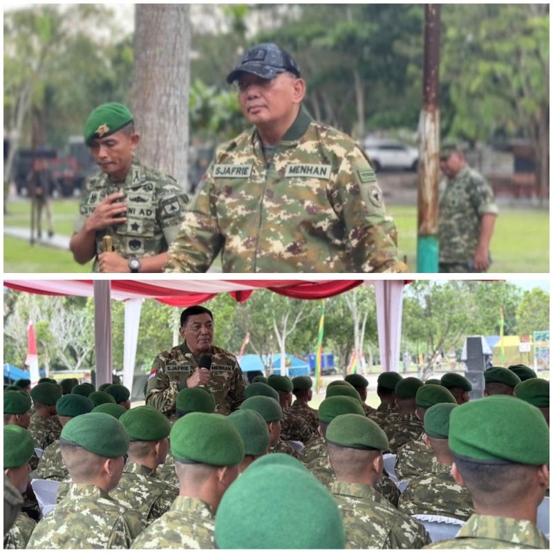 SIAK – Mentri Pertahanan Republik Indonesia Jendral TNI Purn. Sjafrie Sjamsoeddin, melakukan kunjungan kerja ke Markas Batalyon Infanteri Teritorial Pembangunan 851 Barau Barau Cakti (Yonif TP 851/BBC) di Jalan Merempan Hilir, Bumi Perkemahan Pramuka Kecamatan Mempura, Kabupaten Siak pada Kamis, (18/12/2025)