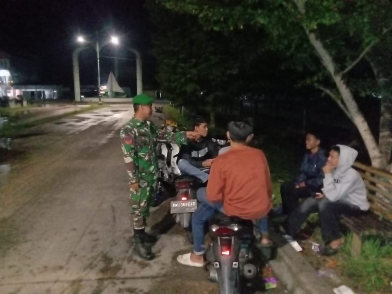 Patroli Mitigasi Siskamling TNI Bersama Ketua RT, Linmas, dan Pemuda Setempat di Wilayah Koramil 04/Rupat