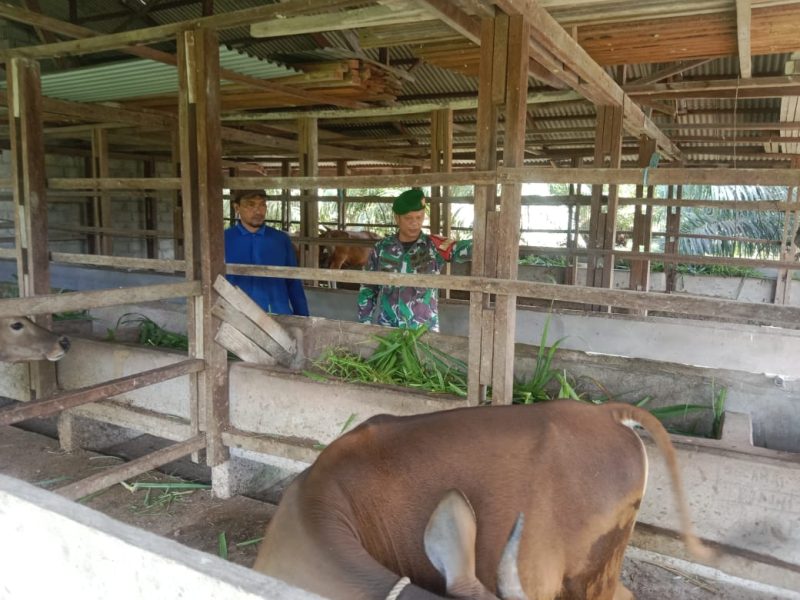 Dalam kegiatan tersebut, Pelda S. Sinaga melakukan pengecekan langsung terhadap hewan ternak milik warga.