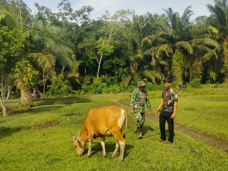 Kegiatan pemantauan tersebut dilaksanakan oleh Sertu Beni Manopo bersama Bapak Rahmad, selaku pemilik ternak.