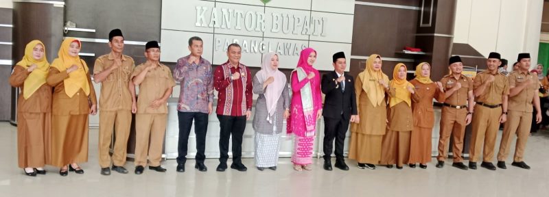 Turut hadir PJ. Sekretaris Daerah Kabupaten Panguhum Nasution S.Sos, M.AP, Ketua TP-PKK Ny. Mahzalena Putra Mahkota Alam Hasibuan, Ketua Darma Wanita Ny. Hamnil Panguhum Nasution dan Para Pimpinan Organisasi Perangkat Daerah terkait.