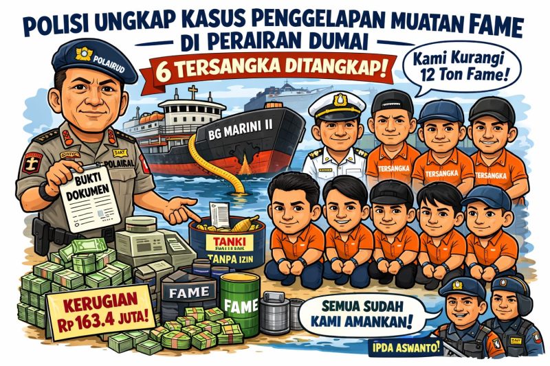 DUMAI – Polres Dumai melalui Satuan Polisi Perairan dan Udara (Sat Polairud) berhasil mengungkap kasus dugaan tindak pidana penggelapan dalam jabatan yang terjadi di perairan Kelurahan Pelintung, Kecamatan Medang Kampai, Kota Dumai. Kasus ini menyebabkan kerugian bagi PT. Lintas Maritim Indonesia sebesar sekitar Rp163.413.600.