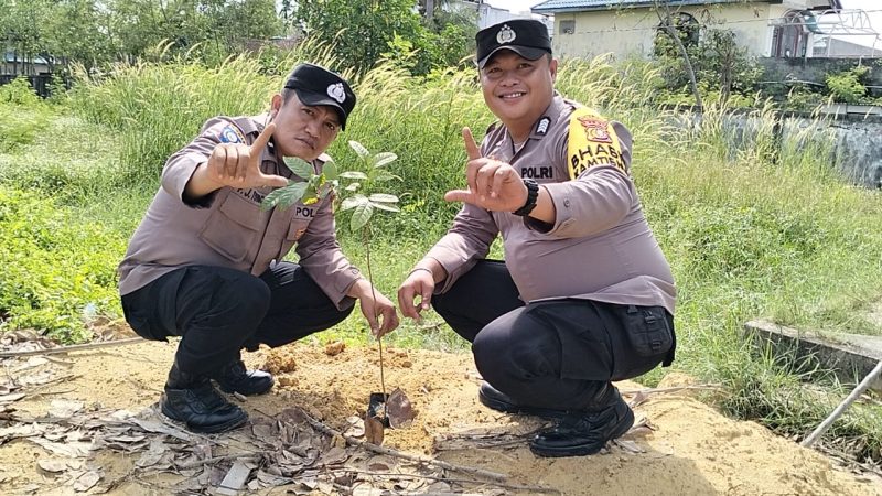 DUMAI – Polsek Dumai Kota melaksanakan kegiatan penanaman pohon di halaman Gardu PLN Kota Dumai, Jalan Sultan Syarif Kasim, Kelurahan Bintan Ke, Kecamatan Dumai Kota, pada Kamis, 20 November 2025, pukul 10.00 WIB.
