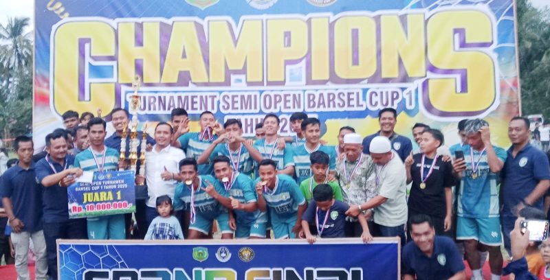 PADANG LAWAS – Sorak sorai penonton menggema di Lapangan Bola Desa Pagur Satio Kecamatan Barumun Selatan, saat Kadisporapar M.Rasyidi MM sebagai Perwakilan Bupati Padang Lawas Putra Mahkota Alam Hasibuan SE (PMA) didampingi Ketua Umum Barsel CUP 1 Hendra Kusnanda Siregar SH secara resmi menutup Turnamen Sepak Bola Semi Open Barsel CUP1 2025, Jum’at (21/11/2025).