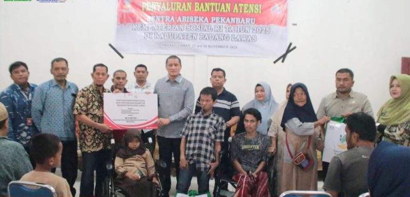 PADANG LAWAS – Pemerintah Kabupaten Padang Lawas menyalurkan bantuan ATENSI dari Kementerian Sosial RI di Kantor Dinas Sosial Kabupaten Padang Lawas melalui Sentra Abiseka Pekanbaru. Jumat (28/11/25).